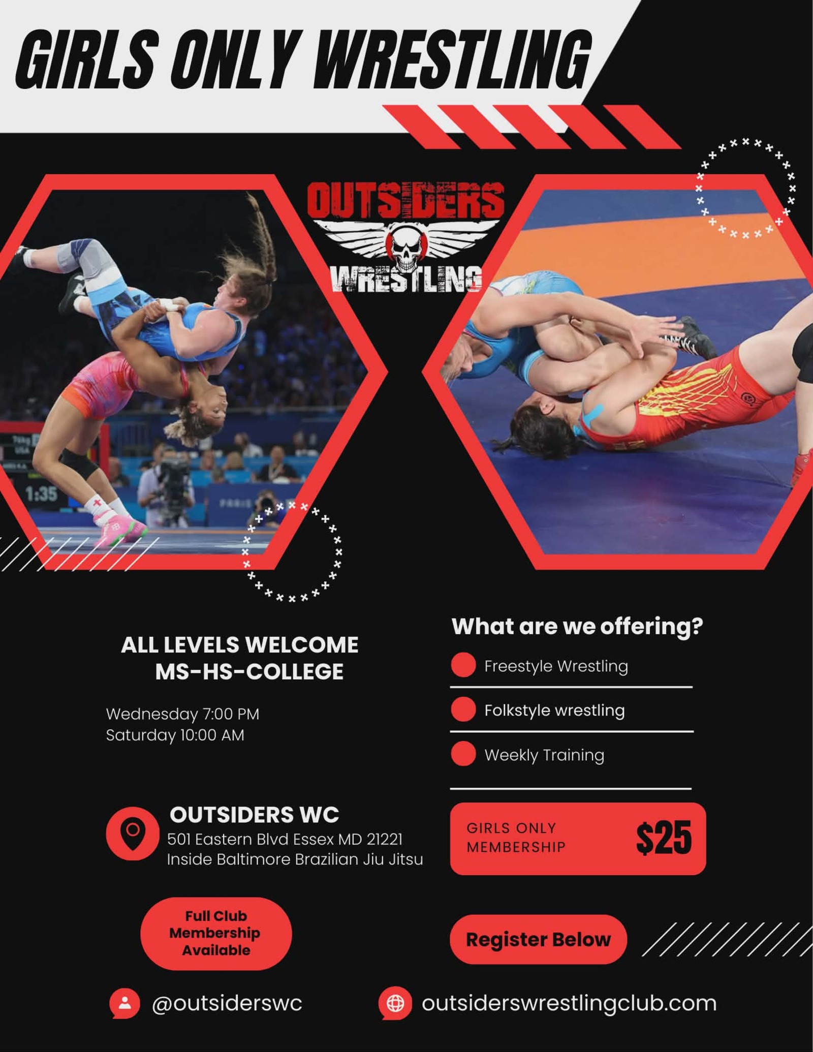 Outsiders Wrestling Club is located in Essex MD. Serving young athletes since 2016. We compete locally, regionally and nationally. In our short history we have helped our athletes achieve success from the junior league to college level.